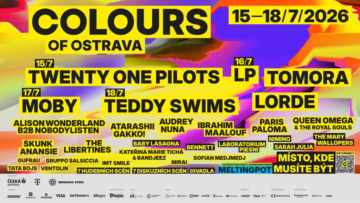Festival Colours of Ostrava tento rok vstupuje do svojho 23. ročníka a opäť premení unikátny industriálny areál Dolnej oblasti Vítkovice na jedno z najživších kultúrnych miest strednej Európy. Medzi 15. a 18. júlom 2026 ponúkne štyri dni koncertov svetových hviezd aj výrazných objavov súčasnej scény, diskusné fórum Meltingpot, divadlo, film aj výtvarné inštalácie. Program tento rok posilňuje nové pódium Steel Stage, rozšírená divadelná dramaturgia aj presunutý program Meltingpotu do oblasti Hlubina.