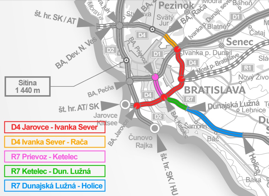 Vzdialenosť do Bratislavy – nové diaľničné úseky D4R7 dávajú ľuďom zo satelitov možnosť využívať inú diaľnicu, než D1 upchatú tranzitujúcou dopravou. Situácia sa v najbližších 5 rokoch ešte zlepší, otvorením diaľničnej križovatky D1 a D4.