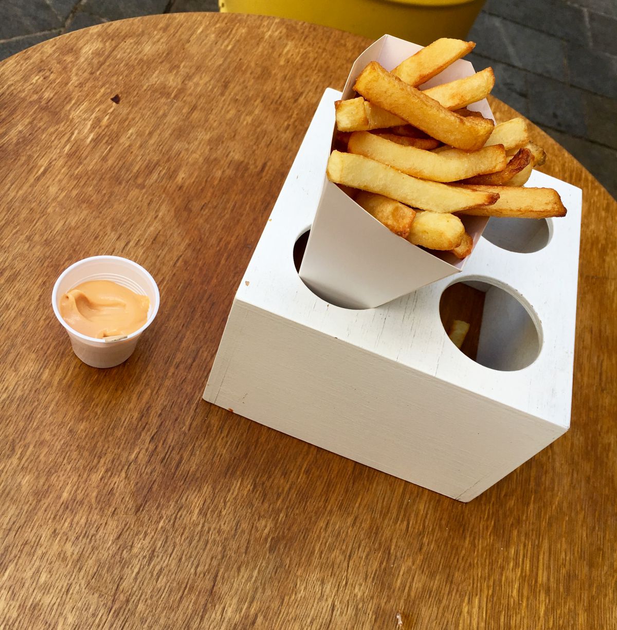 Vlak meškal a aby sme stihli prísť na čas do práce, išli sme MHD. Môj prvý výdavok prvého trojeurového dňa bolo 35 centov(v prípade neštudenta by to bol dvojnásobok) za lístok na autobus. Do práce som si priniesla jedlo z domu. Raňajky, aj obed. Niekedy však bývam hladná viac ako predpokladám a potom, ako som odišla z práce, som sa zastavila na najlepšie hranolky v meste za 1,99€. Na vlakovú stanicu sme popoludní išli pešo. Tam som už však lístok pre psa kúpila, a ten ma vyšiel na 60 centov. Ja som sa viezla opäť zadarmo. Suma sumárum, ma môj prvý deň vyšiel na 2,94€.