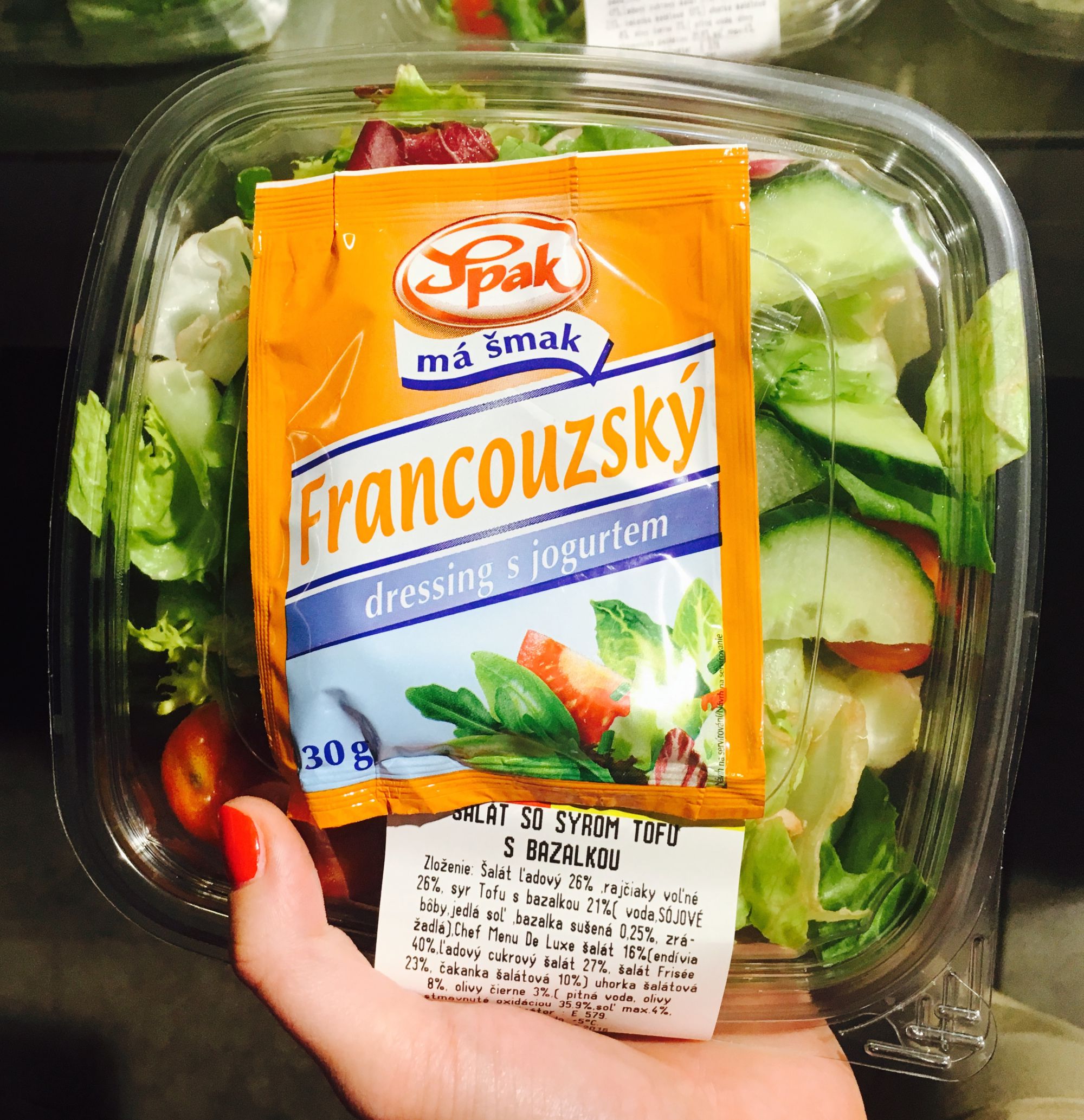 Ešte ráno som navštívila potraviny, kde som si kúpila balený šalát, dressing a pečivo na obed. Čo ma vyšlo na necelých 2,50€. V tento deň mi zostalo v peňaženke 50 centov a nevedela som sa dočkať kedy prídem domov a dobre sa najem.