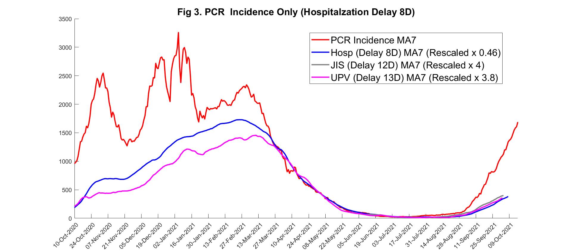 Richard Kollár upozorňuje, že dáta tak neodrážajú súčasný stav. Zmena v reportovaní dát totiž vytvorila systematickú zmenu vzťahov základných premenných, od ktorých sa odrážame – incidencie a hospitalizácií: „Ak by aj ich reálny vzťah zostal oneskorenie 8 dní, táto zmena, bez zmeny čohokoľvek iného aj v 7 dňových priemeroch vyvolá 2,5 dňové oneskorenie, to znamená, že sa 8 dní zmení na 10,5.“
