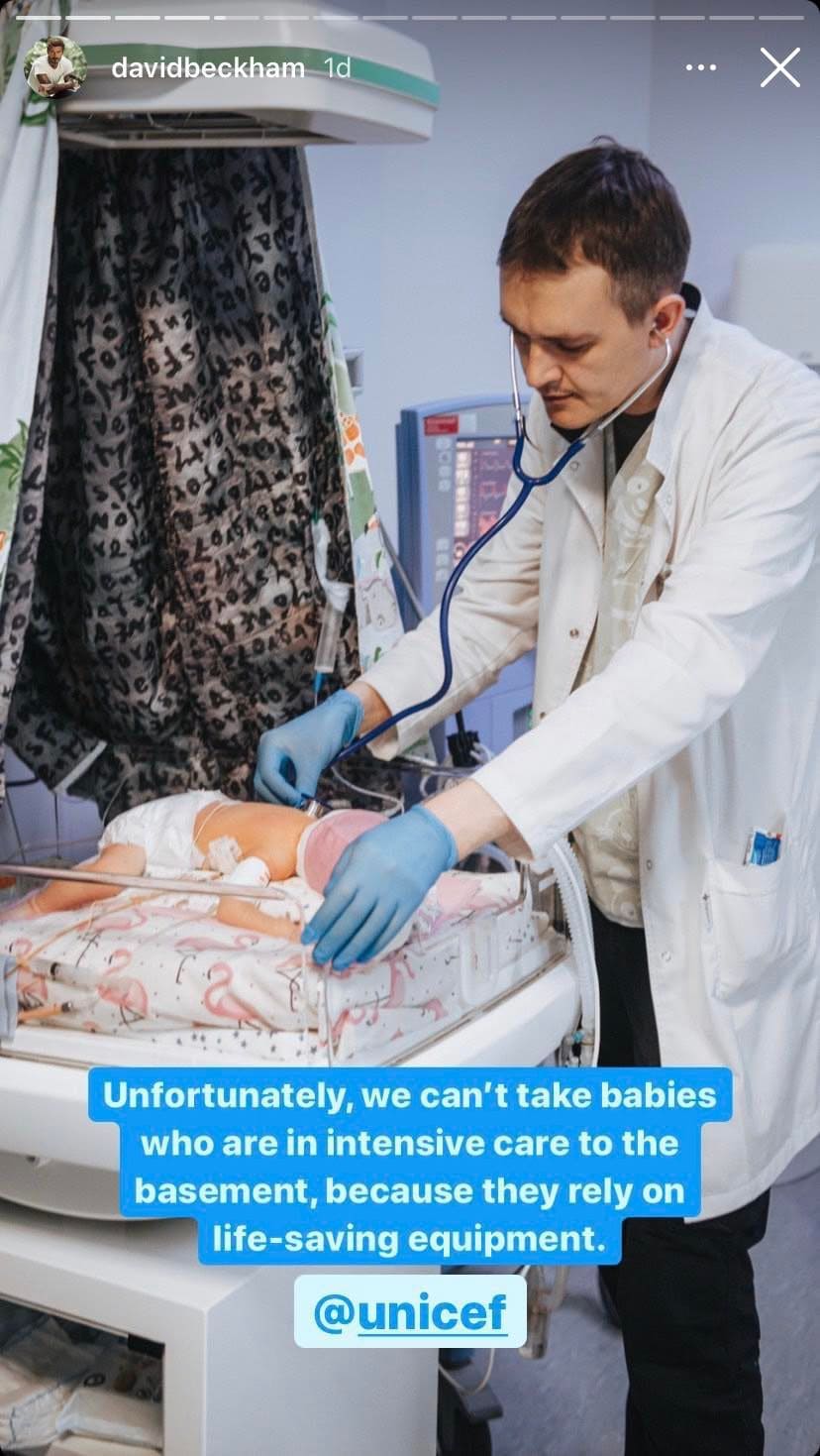 Ukázala na nich lekárov ošetrujúcich novorodencov, ktorí sú na svete doslova pár dní. Objavili sa aj zábery z pivničných priestorov, kam boli premiestnení pacienti už na začiatku vojny, ktorá prepukla už takmer pred mesiacom. Iryna tiež poukázala na dôležité prístroje, ktoré im darovala charitatívna organizácia UNICEF a ktorej veľvyslancom je práve David Beckham.