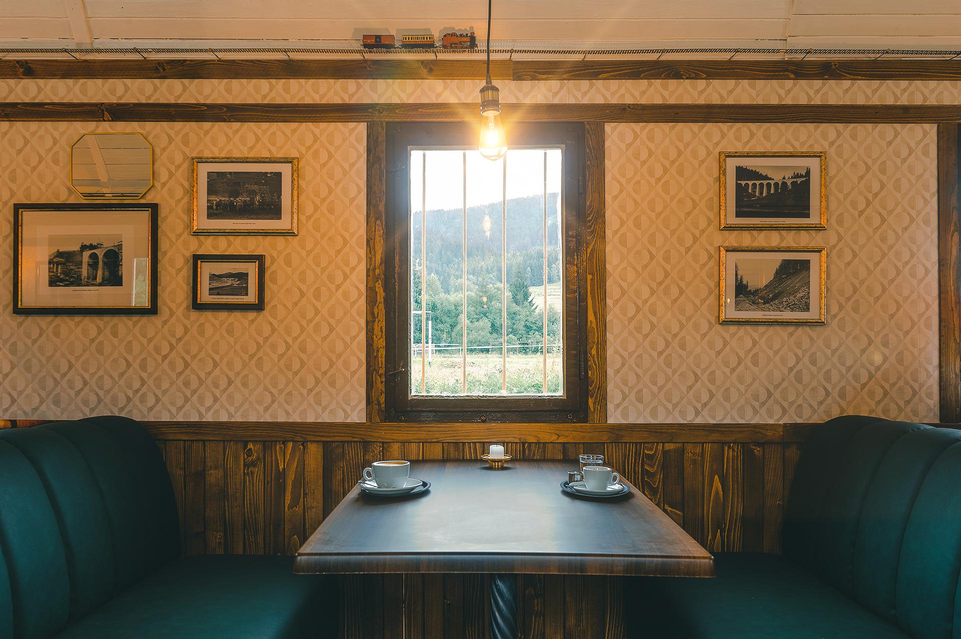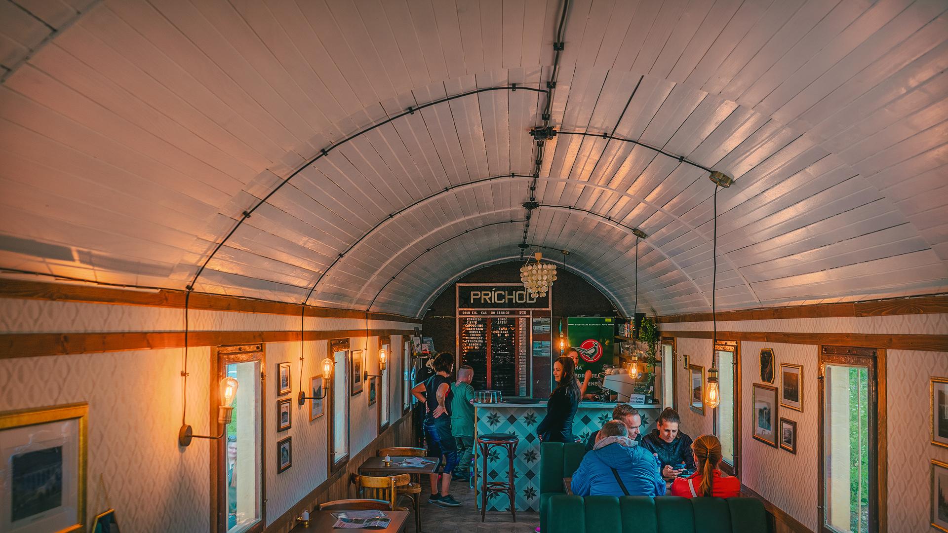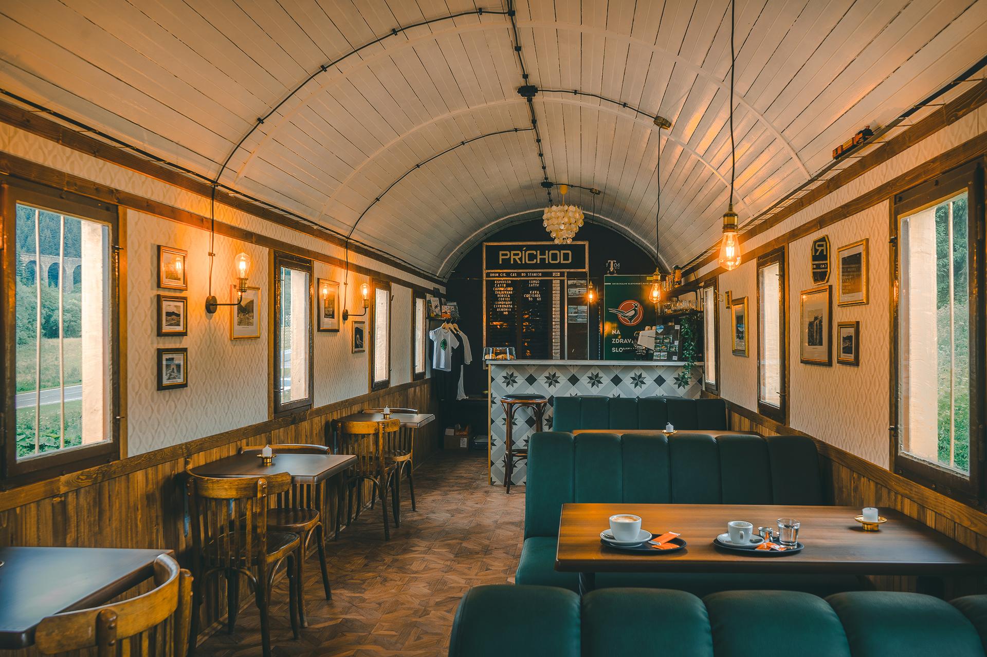 „Poňali sme ho viac kaviarensky, ale so zachovaním niektorých vlakových prvkov,“ dodáva na margo kaviarne Andrej. Sedí sa tu ako vo vlaku, na klasických koženkových sedačkách.