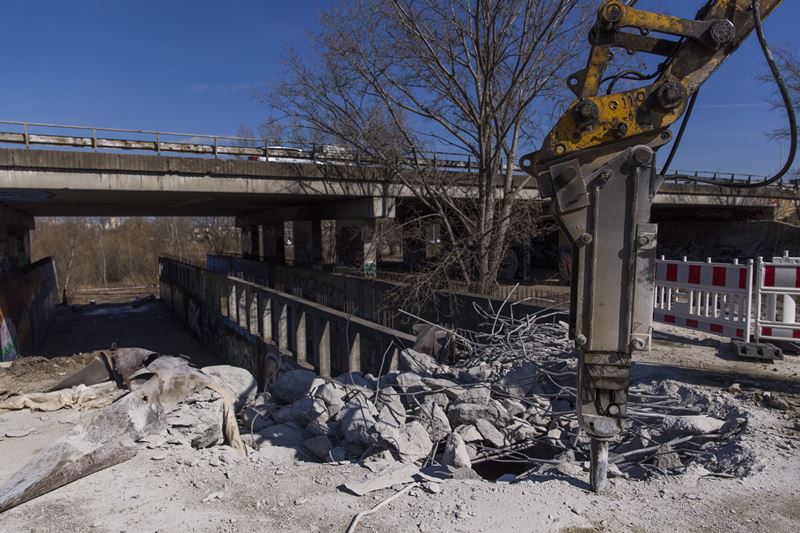 Búracím prácam predchádzala geodetická príprava, odhumusovanie mosta a jeho okolia, úprava terénu a ohradenie priestoru stavby. Postupne bude zbúraná hrubá stavba stanice metra Janíkov dvor a 300 metrov dlhý úsek traťového tunela metra. Búracie práce majú trvať niekoľko týždňov.