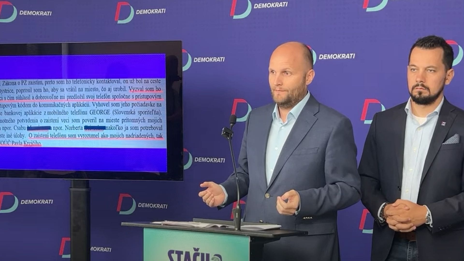 Podľa Demokratov video zakrýva „ten, ktorý pred spravodlivosťou utiekol do Bieloruska“ – šéf policajnej inšpekcie Branislav Zurian, informovali Demokrati v svojej tlačovej konferencii.
