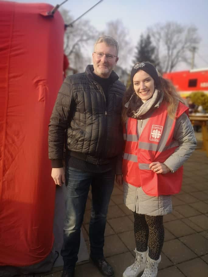 „Dostala som takú milú úlohu, že som detičkám rozdávala sladkosti. Všimol si ma tam jeden pán z Nemecka, predstavil sa ako Jurgen a prihovoril sa mi. Prioritne doniesol dosť veľa liekov, pretože sme tam mali stánok s takýmito potrebami, kde si mohli utečenci vybrať, čo potrebujú. Najskôr teda prišiel tam a daroval nám lieky,“ prezradila nám Valéria.