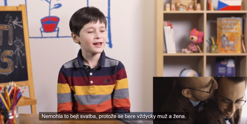 Českí novinári z Televize Seznam sa rozhodli zistiť, čo si myslia deti o homosexuáloch. V popise svojho videa uvádzajú „rovnakopohlavné svadby a žiadosti o ruku mladú generáciu nešokujú. Nie všetkým je ale pohlaď na bozk dvoch chlapov príjemný. Deti typicky a „na plnú pusu“ prejavujú svoje dojmy. A niekedy je to sila“.