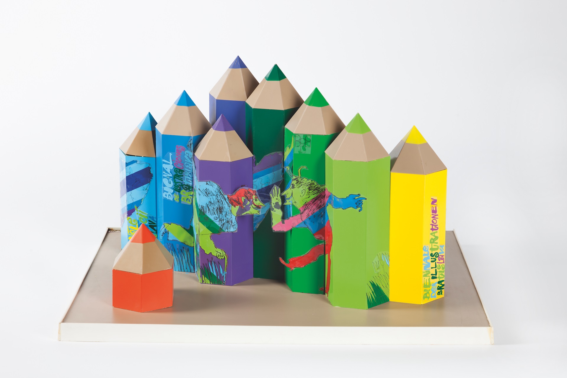 Sochársko-architektonická maketa na objekt exteriérového pútača pre Bienále ilustrácií Bratislava (BIB) je spoločným dielom výtvarníka Milana Veselého a architektov Viktórie Cvengrošovej a Virgila Droppu.
