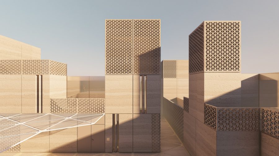 Vysoké nároky na udržateľnosť spĺňa víťazný návrh využitím lokálnych obnoviteľných materiálov či technológií reflektujúcich prírodný svojráz Emirátov.