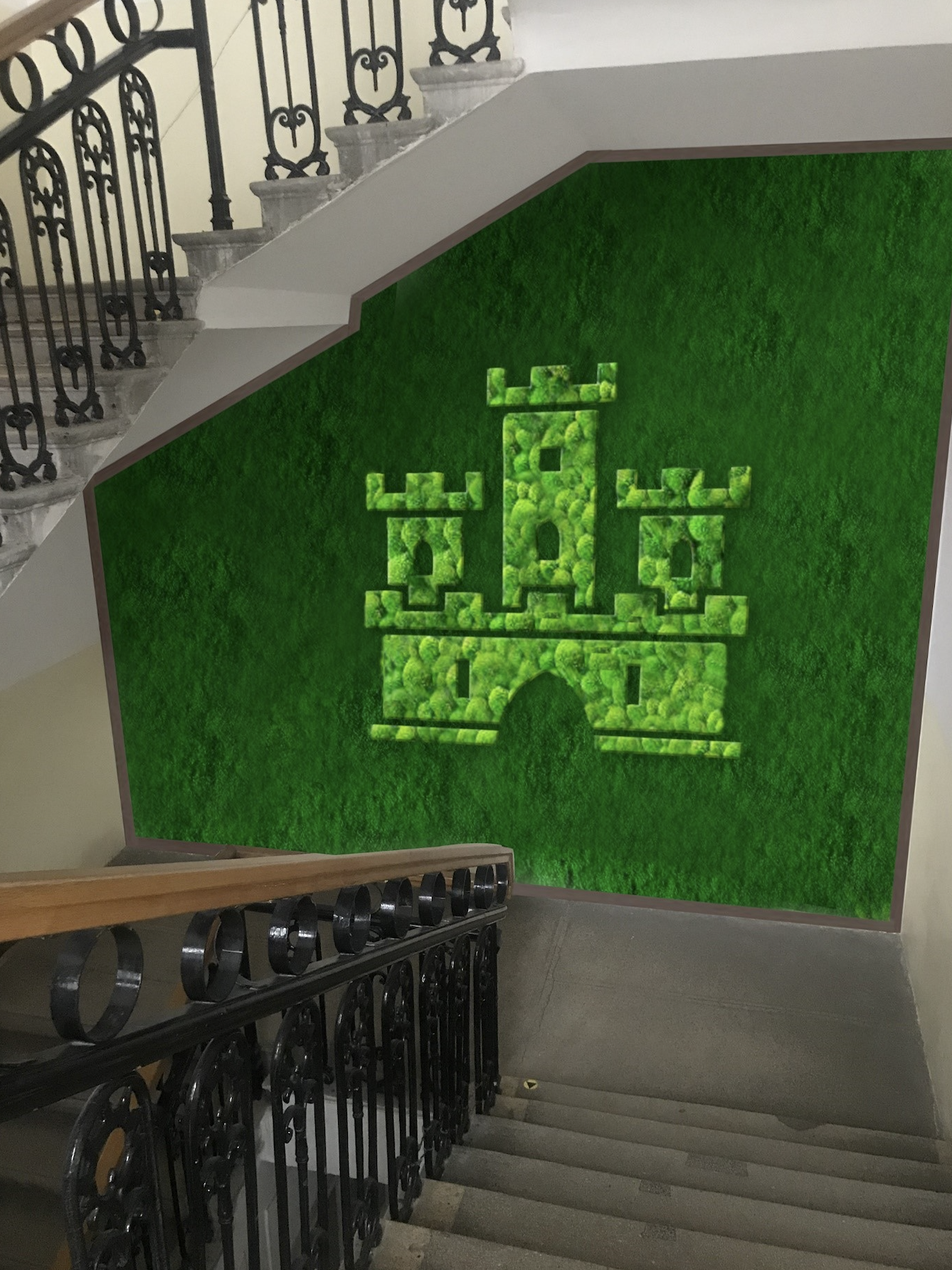 Machová stena s rozmerom 6 × 4 metra na stene úradu mestskej časti Bratislava-Staré Mesto by mala zveľadiť najfrekventovanejšie miesto miestneho úradu – hlavné schodisko – a preniesť kúsok prírody dovnútra úradu. Mach nie je živý, ale stabilizovaný, teda hoci nevyžaduje žiadnu špeciálnu starostlivosť, má dlhú životnosť. Vďaka procesu stabilizácie si dlhodobo zachováva svoju prirodzenú farbu, štruktúru a mäkkosť, preto je ideálny na tvorbu dlhodobých bezúdržbových zelených dekorácií. Je dlhodobou stratégiou mestskej časti dostať do našich životov viac prírody, byť zelenším, ekologickejším – a teda aj zdravším. Machové steny sú prírodným indikátorom vlhkosti vzduchu – ak vlhkosť vzduchu veľmi klesne, mach reaguje stvrdnutím. Nízky stav vlhkosti vzduchu je pre človeka nevhodný. Okrem dekorácie tak bude zabezpečený aj indikátor vlhkosti v budove úradu. Mach zároveň pohlcuje nadmernú vlhkosť, takže bráni vzniku toxických plesní, čo pozitívne pôsobí na dýchacie cesty. Machová stena funguje aj ako efektívny tlmič hluku.