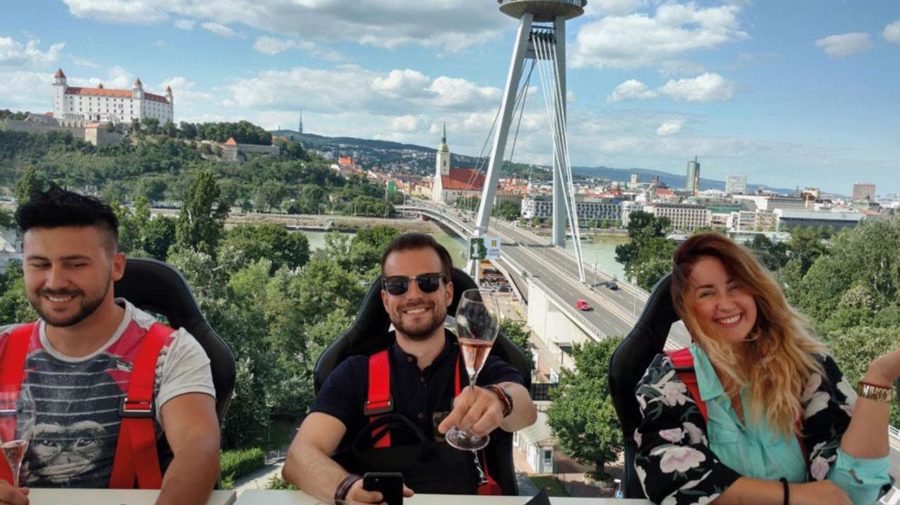 Keď sa rozhliadneš a uvidíš Bratislavu z perspektívy ako nikdy pred tým, someliér, ktorý stojí uprostred platformy ti podá vychladené prosecco alebo mimozu. K vínu, dostaneš aj starostlivo napárované tartaletky, oriešky a samozrejme vodu a iné nealko nápoje. Tí odvážnejší sa môžu na sedačke otočiť o 180 stupňov a vychutnať si výhľad úplne bez zábran. Pred tebou a pod nohami nebudeš mať nič.