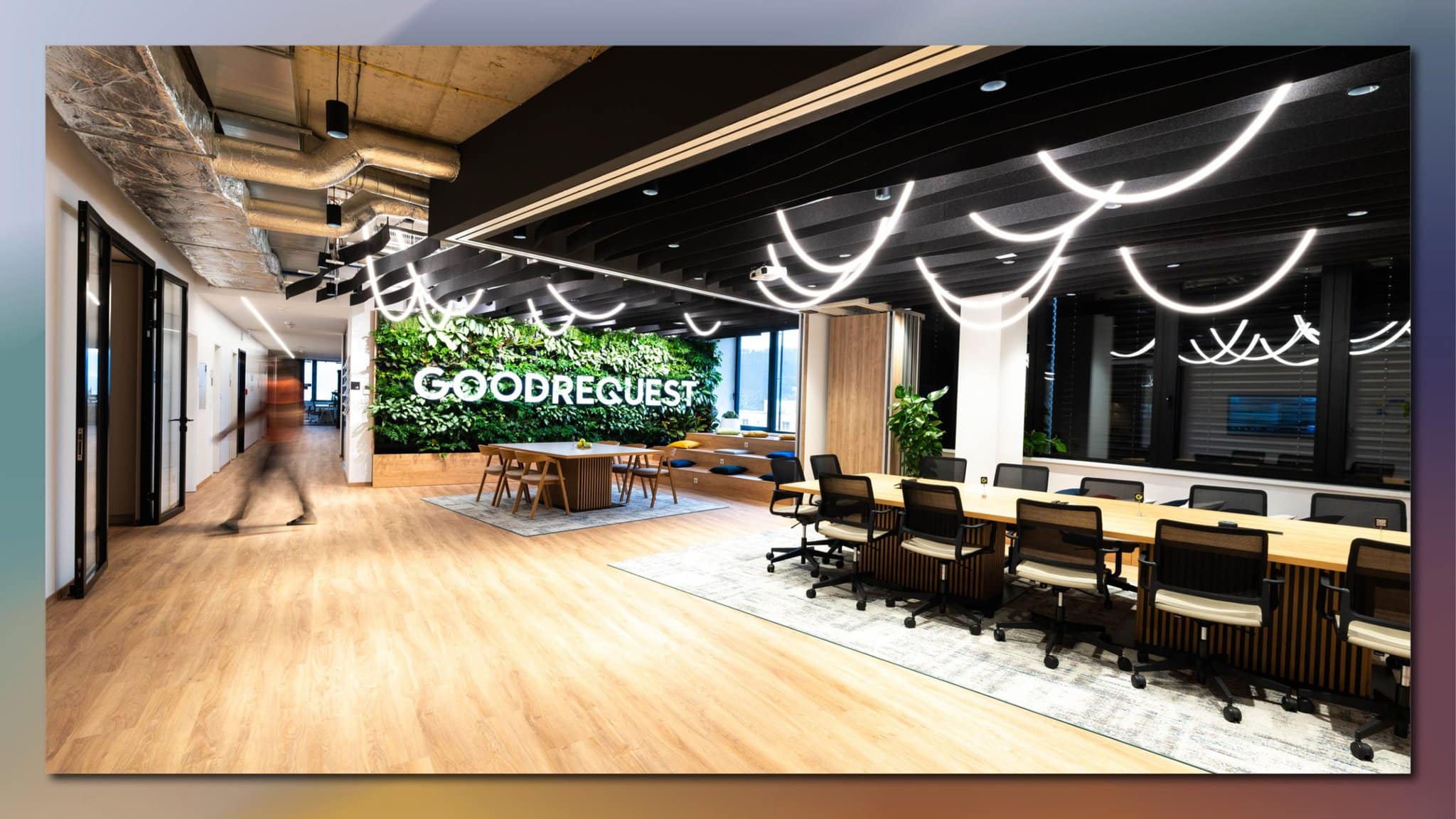 GoodRequest, s.r.o. – priestor spája dizajn, technológie a ľudí. Zasadačky sú rozpoznateľné podľa farieb a obrazov slovenských umelcov. Spoločné priestory zdobia citáty a patterny, ktoré odrážajú značku a jej kultúru. Nachádza sa tu aj oddychová miestnosť s relaxačnými aktivitami a posteľou.