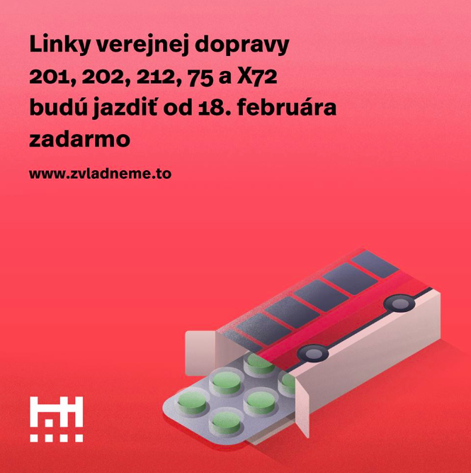 „Od pondelka 18. februára až do konca marca budú môcť všetci cestujúci na linkách 201, 202, 212, 75 a X72 jazdiť zadarmo. Okrem toho BID ponúka v tomto čase aj 50% zľavu z týždenného cestovného lístka, ktorý si zakúpite prostredníctvom aplikácie IDS BK. Zvládneme to!“ píše primátor Matúš Vallo na svojej stránke.