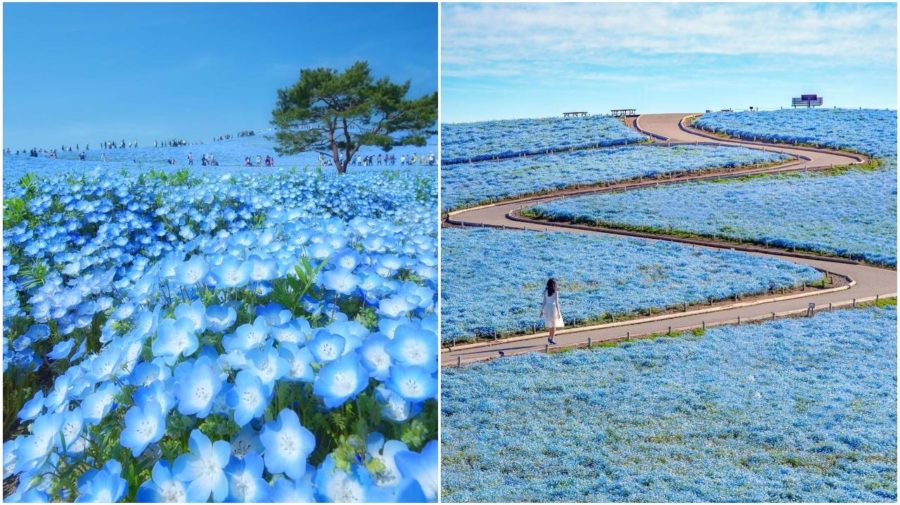 Malý modrý kvietok známy ako Nemofila sa rozprestiera v prímorskom parku Hitachi, neďaleko mestečka Mito. Každoročne začiatkom mája symbolizuje obyvateľom krajiny pomalý nástup leta.