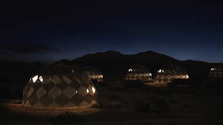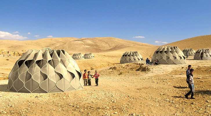 Za projektom je oceňovaná architektka a dizajnérka Abeer Seikaly. Inšpiráciu čerpala z tradičných techník pletenia košíkov a pružnej hadej kože. Stan zvláda vďaka jej vynálezom aj zložité poveternostné podmienky či dážď. Každý stan má, navyše, svoj vlastný systém zbierania vody.