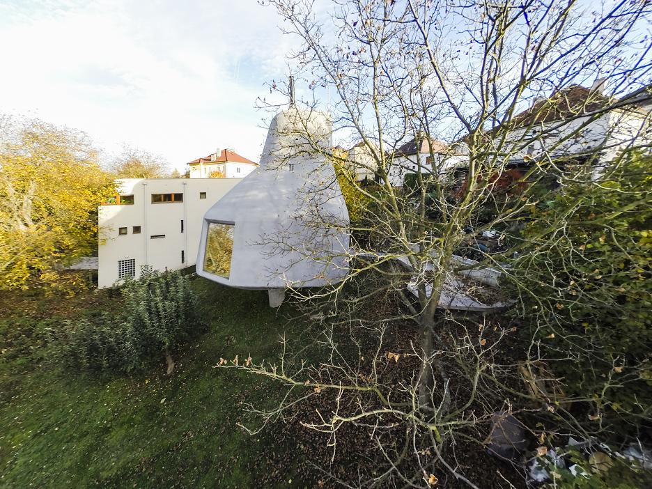 - Rodinný dom v strmom svahu s panoramatickým výhľadom do sadu. Koncept reaguje na orientáciu a svahovatosť pozemku a rešpektuje pôvodnú záhradu. Projekt je nominovaný na Mies Van Der Rohe Award 2017 za Českú republiku.
