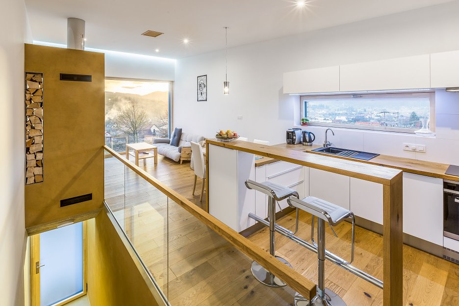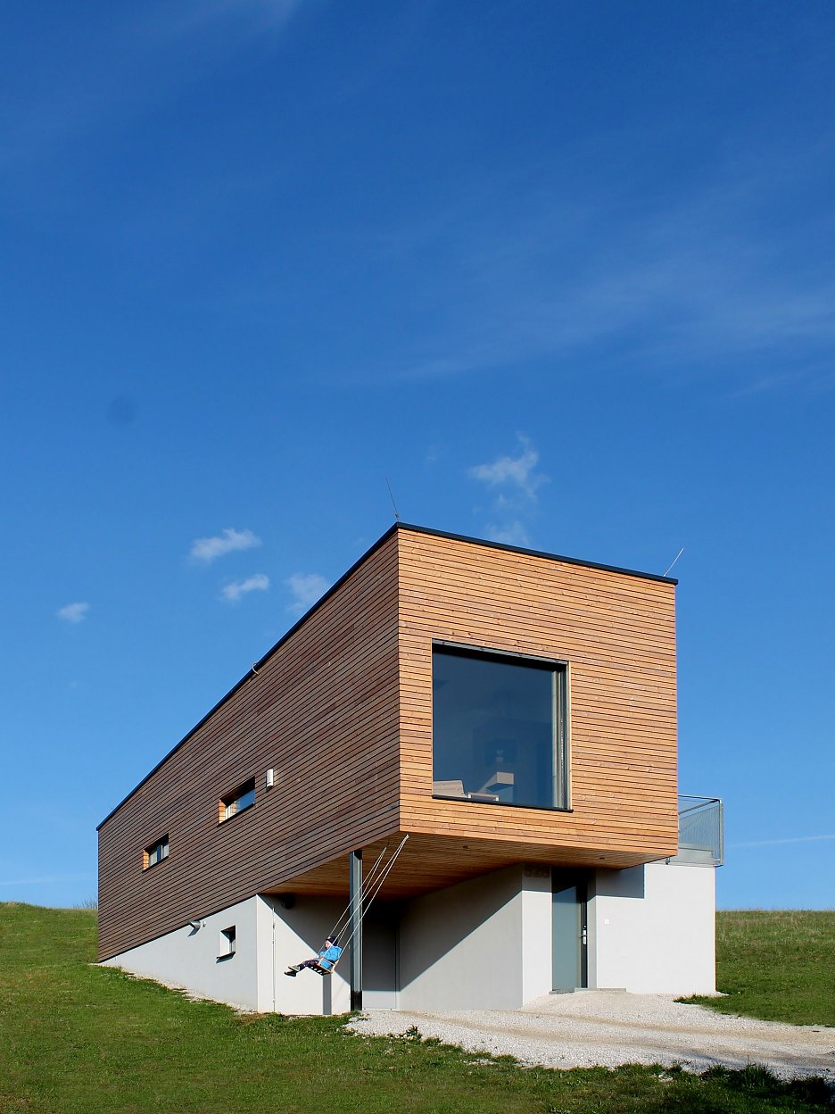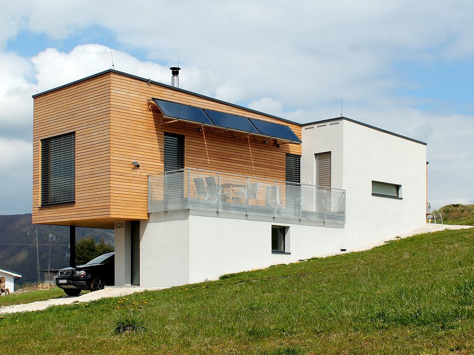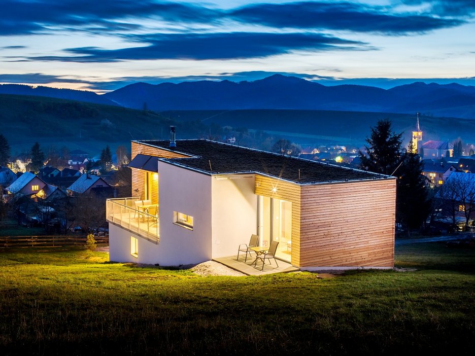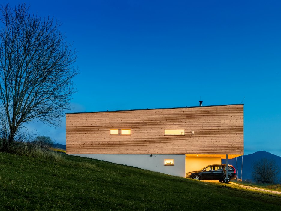 - Úzky svahovitý pozemok s atraktívnym výhľadom predurčil formu malého drevodomu. Osadenie vyžadovalo minimálne úpravy terénu. Dom Je navrhnutý pre štvorčlennú rodinu s minimálnymi nárokmi na priestor, ale s vysokými nárokmi na kvalitu bývania.