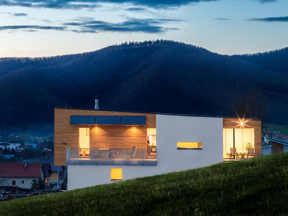 Obvodový plášť je v kvalite pasívneho domu, no pasívny štandard nebolo možné dosiahnuť vďaka malej výmere a hlavne vysokému faktoru tvaru (nekompaktný tvar). Napriek tomu dom spĺňa kritéria kategórie A0 – budovy s takmer nulovou spotrebou energie, o čom svedčia aj mesačné náklady na vykurovanie, ohrev pitnej vody a chladenie = 11,50€/mesačne. V cene je zahrnuté palivo, ktoré je tvorené z 98% drevom a 2% elektrinou, ďalej elektrina potrebná na chod celého systému (obehové čerpadlá, vzduchotechnika atď.).