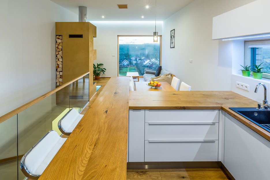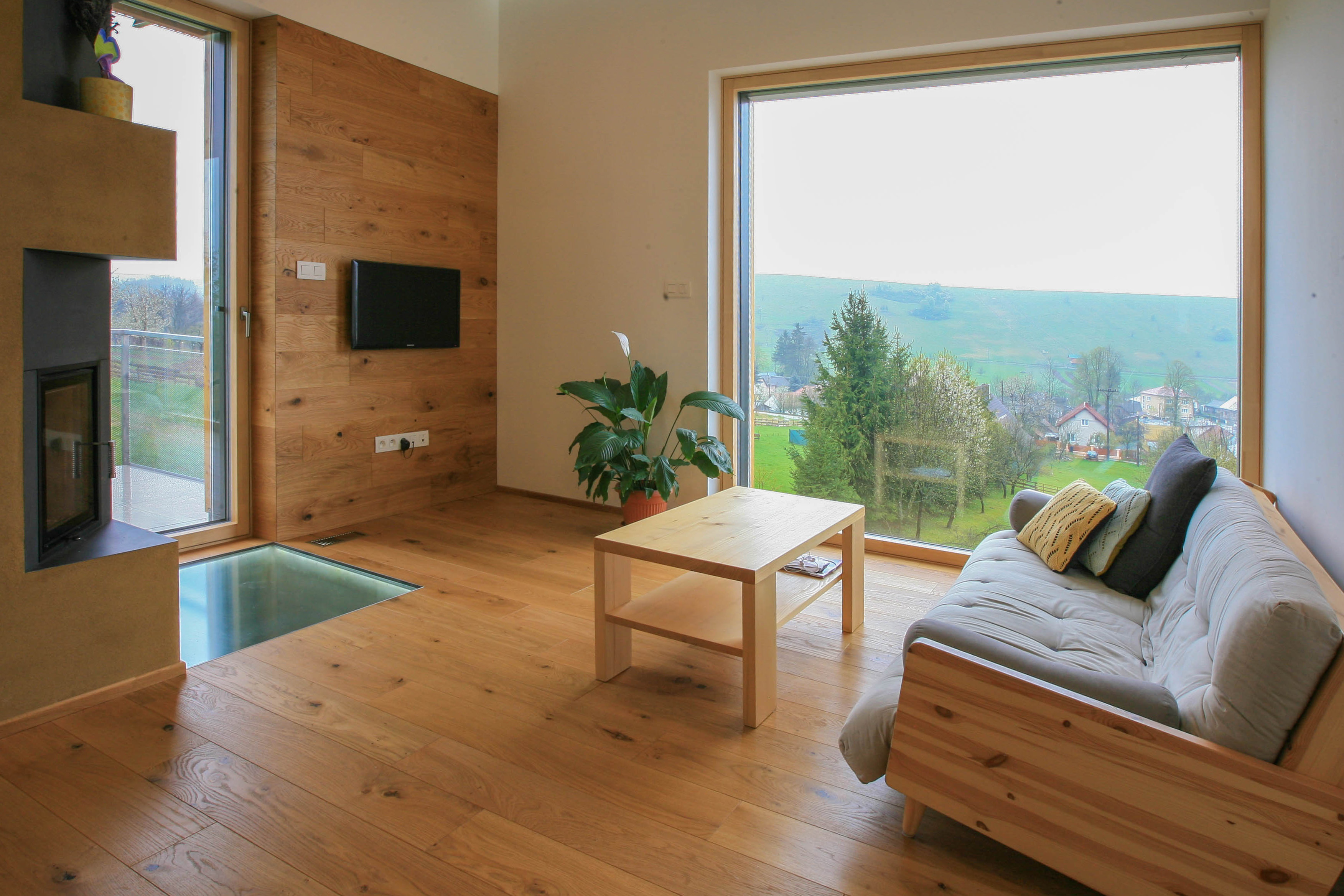 Konštrukcia je kombinovaná, suterén je betónový a obytné podlažie je drevené s murovanými vnútornými priečkami a betónovými podlahami pre lepšie akumulačné schopnosti. V každej izbe je minimálne jedna stena s hlinenou omietkou najmä pre výbornú reguláciu vlhkosti, na ktorú sú drevostavby citlivé, tiež pre pohlcovanie pachov a v neposlednom rade pre úžasnú prirodzenú farbu hliny. Prírode sme sa snažili priblížiť aj zelenou extenzívnou strechou s vegetáciou lúčnych bylín, ktorá je nad celým obytným podlažím (minulý rok tam vyrástla paradajka, ktorá bola fakt chutná, i keď neviem, kde sa tam zobrala).