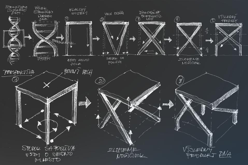 Momentálne pracujem na ďalších produktoch aktuálnej kolekcie DNA, ktorými sú barový stolík, dvojsedačka a interiérové doplnky.