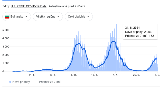 Keď sa však na počty nakazených v Bulharsku pozrieme dnes, tak počty nakazených začínajú rapídne stúpať. „Krajina prechádza delta vlnou. Áno, zatiaľ má „len“ má polovičný počet prípadov na 1 000 000 obyvateľov ako majú Veľkej Británii, ale aj tak už teraz dosahujú 5 násobne viac úmrtí ako na Ostrovoch,“ uviedol vo svojom príspevku Martin Smatana.