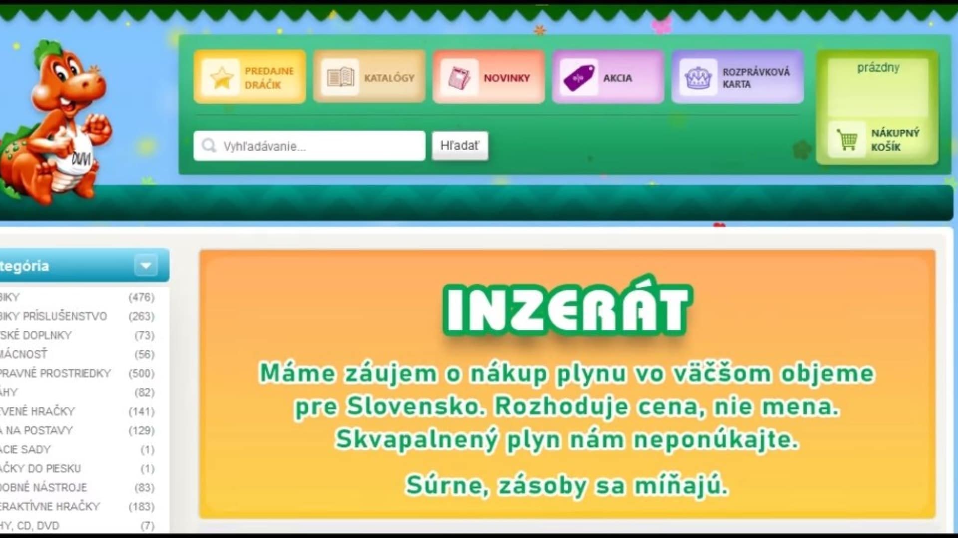 Dráčik totiž tému vtiahol do prostredia, v ktorom by ju zrejme nikto nečakal a kam by si po ňu nikto ani nešiel. Predsa len, Dráčik predáva hračky a ich web je dôverne známy najmä deťom.