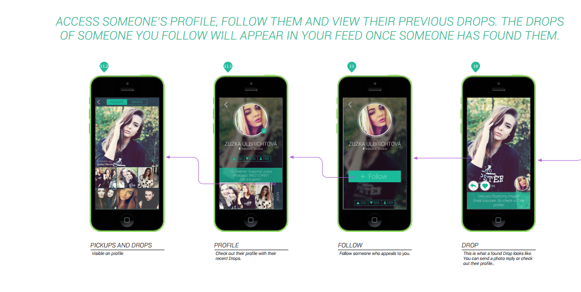 Aplikácia Droppie prinesie užívateľovi vždy zaujímavý obsah a to ju ani netreba mať otvorenú. ,,Ako si tak chodíš po svete, v pozadí zbieraš fotky so správami, ktoré niekto zanechal na tvojej trase. Nemusíš ho ani poznať. Keď raz zdvihneš niekoho „Drop“, môžeš naň reagovať – Snapchat style. A ak sa ti nepáči, kašleš na ňu. Unikátny algoritmus však vždy zabezpečí, aby bol obsah relevantný a bolo ho dostatok. Každý user má na Droppie svoj profil, ktorý je možné followovať, a tým sa jeho dropy zobrazia aj iným userom,’’ hovorí Martin Herman.
