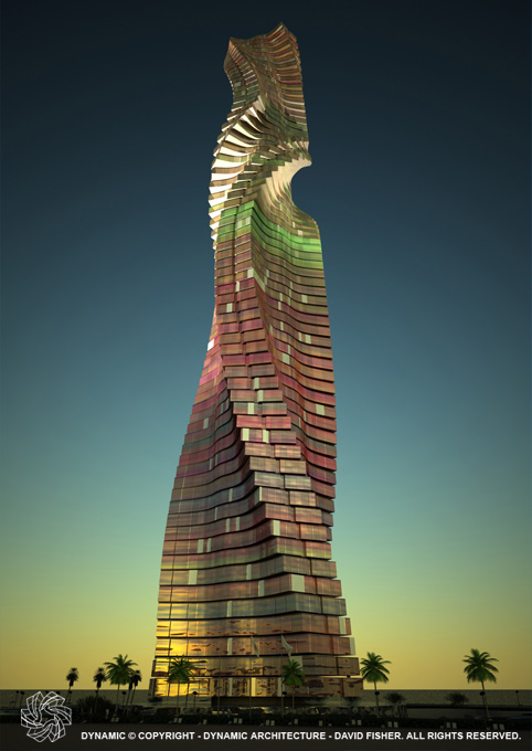 Ďalší dubajský mrakodrap bude mať 80 poschodí a jeho výška bude niečo cez 400 metrov. „Nikdy nebude vyzerať rovnako. Poschodie sa bude otáčať veľmi pomaly, nič nebude počuť,“ povedal architekt projektu David Fisher.