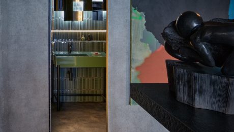 Veľkorysosť otvoreného priestoru akcentuje zasadenie kúpeľne/smaltovanej vane medzi lounge a spálňu.
