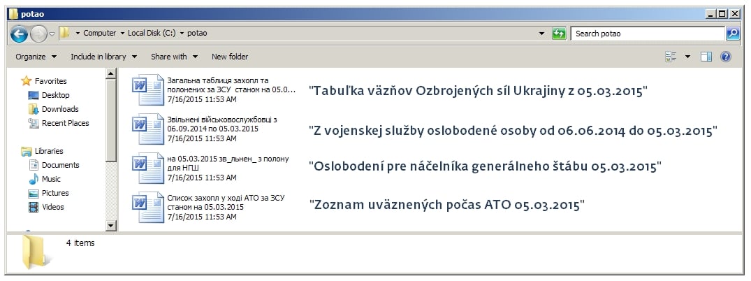 Prostredníctvom neho boli taktiež sledovaní členovia MMM, ide o pyramídovú hru veľmi obľúbenú v Rusku a na Ukrajine. Podľa údajov ESETu bol tento škodlivý kód zachytený aj v Gruzínsku a Bielorusku. Potao je typický kyberšpionážny trójsky kôň, ktorý kradne heslá a citlivé informácie z infikovaných zariadení a zasiela ich na vzdialený server používaný útočníkom. Tento špionážny škodlivý kód sa po prvý raz objavil v roku 2011, odkedy ho produkty ESETu detegujú. V čase písania tohto textu sú však útočníci stále aktívni.