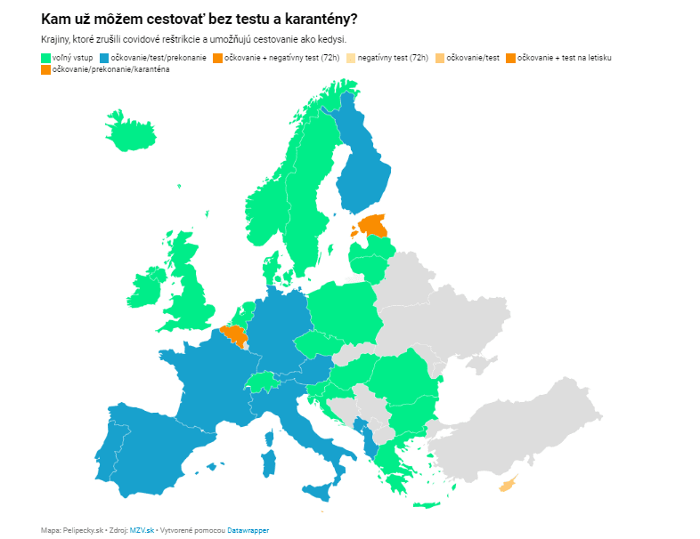 Obľúbené destinácie Slovákov pomaly rušia obmedzenia. Forbes uvádza, že sa už do pätnástich európskych krajín dostaneš bez koronavírusových nepríjemností. Viaceré krajiny už totiž nevyžadujú test či papierovačky navyše. Od mája ruší reštrikcie pre cestovateľov napríklad aj Grécko.
