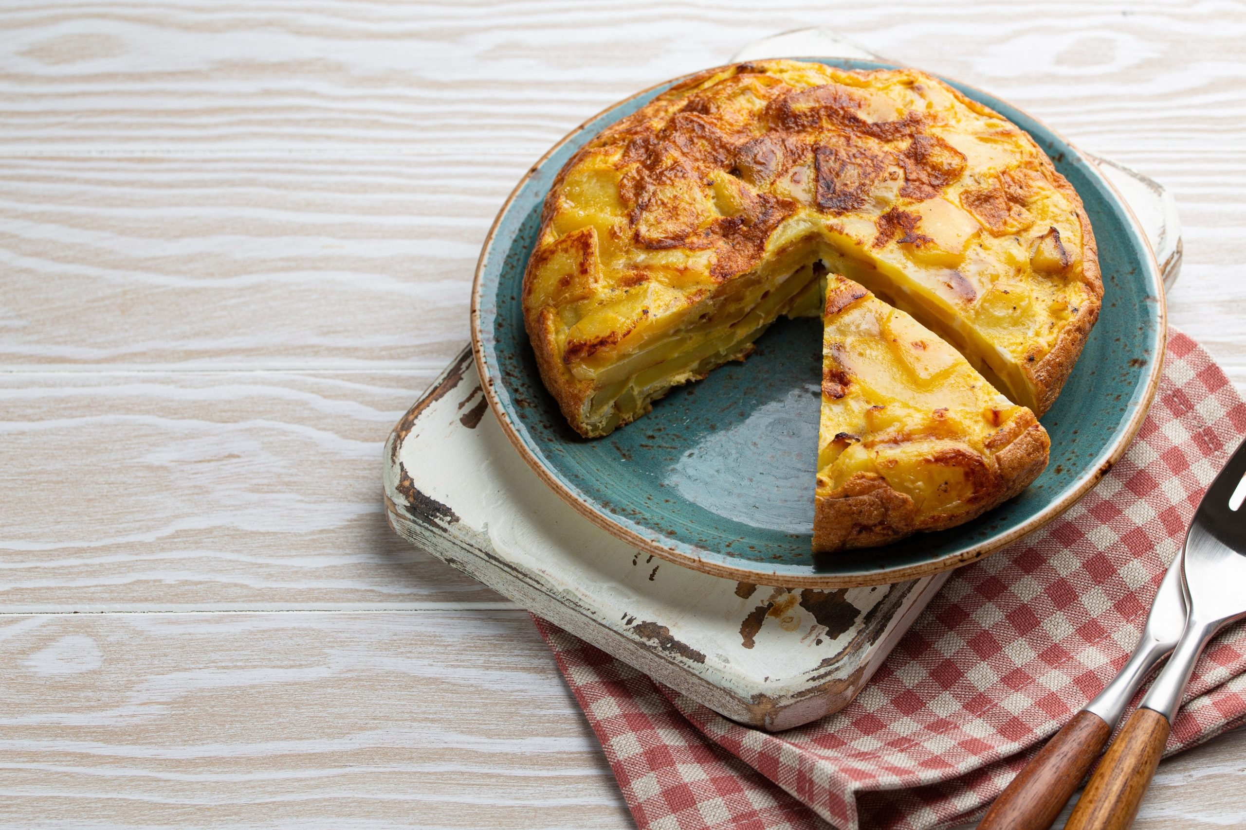 Potrebuješ: zemiaky, cibuľu, vajcia, olivový olej, soľ a korenie