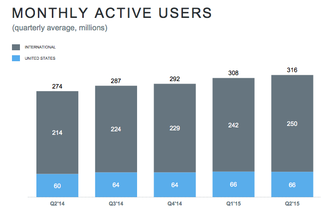 V druhom kvartály tohto roka vykázal Twitter nárast z 308 mil. na 316mil., čo je len 8 mil. kvartálny nárast. (Prečo sa spomína kvartálny a nie ročný nárast? Lebo pre spoločnosť ako Twitter musia byť aj kvartálne čísla omnoho väčšie).