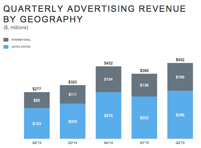 V podstate ani nejde až tak o príjmy celkovo. Stále je to značná suma peňazí. A v prípade US používateľov je to oproti Facebooku len polovičný rozdiel, čo nie je až tak zlé: Twitter – 4$ per US user, Facebook – 8$ per US&Canada user.