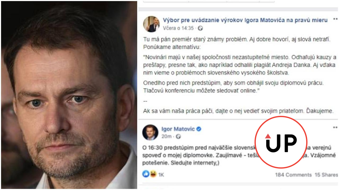 Premiér sa zo summitu vrátil po štyroch dňoch. Očakávalo sa, že okamžite vystúpi so stanoviskom ku nezrovnalostiam v jeho záverečnej práci. Matovič tak nakoniec urobil až včera. Tlačovú konferenciu oznámil cez svoj Facebook.