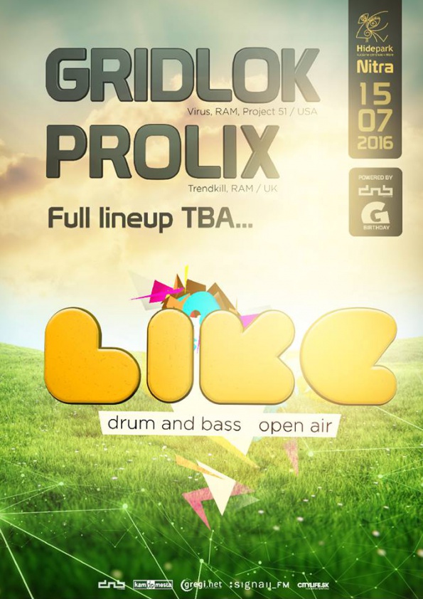 Drum´n´Bass sa teší na Slovensku veľkej popularite a preto tu máme dnb festov hneď niekoľko. Festival Like sa bude konať tento rok prvýkrát, a to v nitrianskom Hideparku. Headlinermi sú Gridlok z USA a Prolix z GB. Okrem toho vystúpia aj slovenské stálice ako Gabanna, Huspi, Matis a spol. Ak si z okolia Nitry a máš rád elektro, určite choď podporiť novú myšlienku.