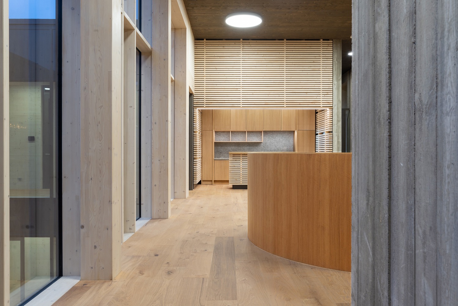 Budova spája, formuje identitu a vytvára dokonalú pracovnú atmosféru. Pre staviteľov bolo dôležité, aby všetci pracovali spoločne a dosiahli to, aby budova na prvý pohľad zaujala, no zároveň nevyčnievala. Ide o súhru tieňa, svetla a dreva.