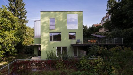Vila Zelený dom, realizovaná architektonickým štúdiom Aoc architekti, stojí v atraktívnej lokalite na pravom brehu Vltavy. Oblasť vyniká príjemným prostredím, ktoré ponúka rozmanité možnosti na relaxáciu a aktívne trávenie voľného času.