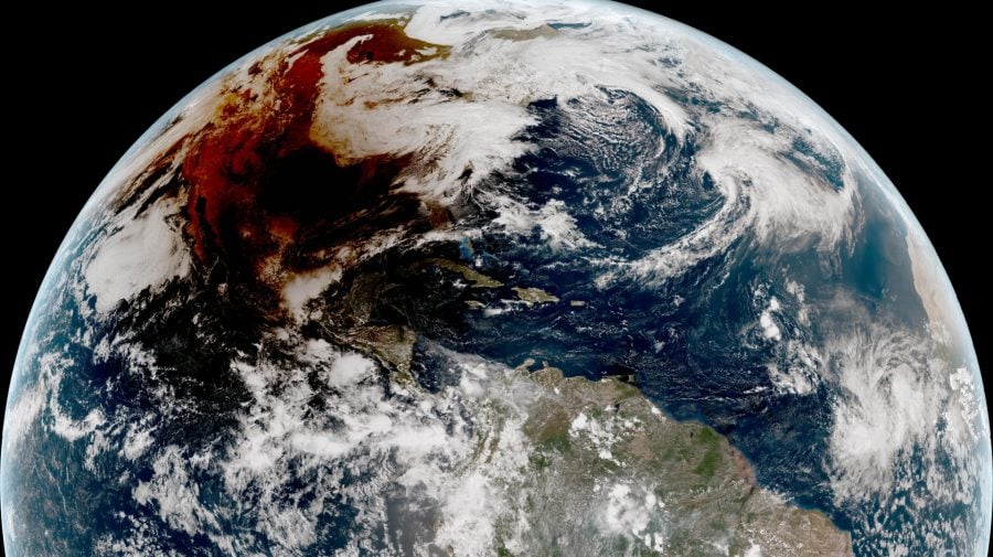 A full-disk view of the Earth, taken just 15 minutes ago.