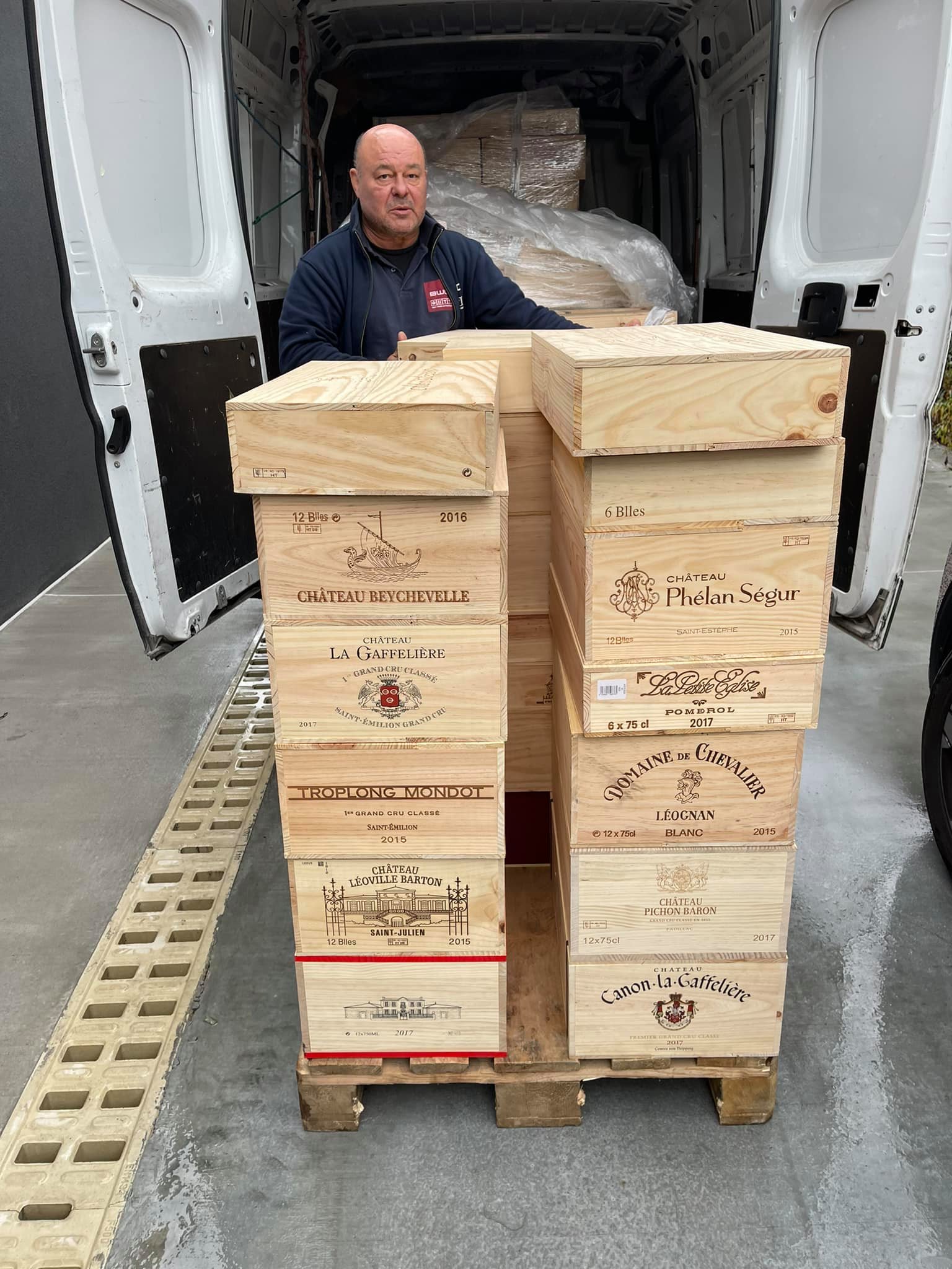 Práve dnes do potravín dorazila aj jedna z veľkých dodávok vína z francúzskeho Bordeax. V drevených krabiciach sa nachádzajú výberové vína všetkých cenových kategórií.