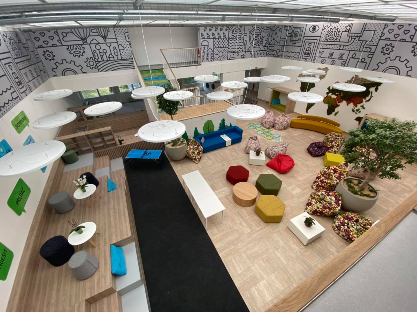 A nejde o hocijakú budovu. Je to nedávno zrekonštruovaná budova, v ktorej predtým sedel úrad a ktorá je kompletne prerobená na modernú školu 21. storočia.