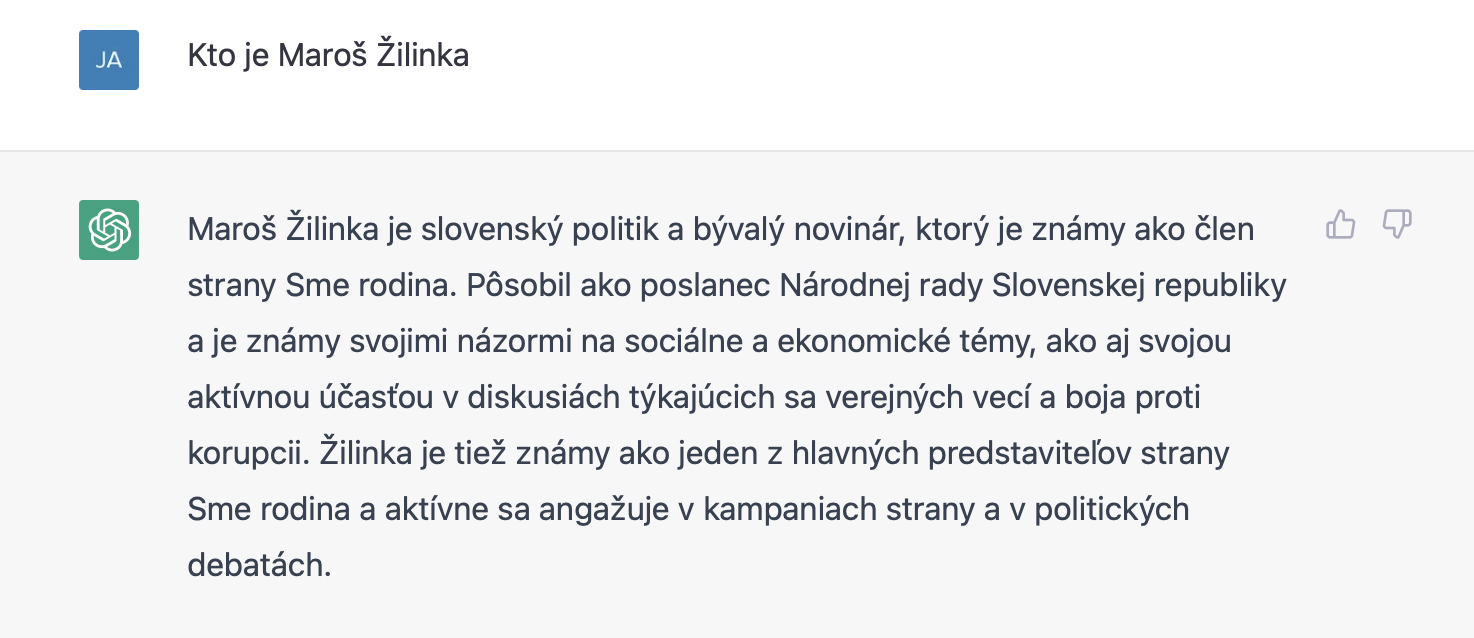 Podľa umelej inteligencie však bol tiež novinárom a hlavne je podľa nej aktívnym členom SME RODINA.
