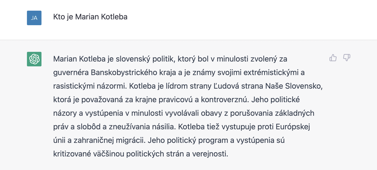 Predseda ĽSNS je kontroverzný dokonca aj podľa umelej inteligencie.