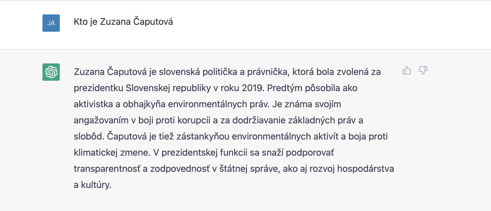 Zuzana Čaputová sa od AI dočkala pomerne presného opisu.