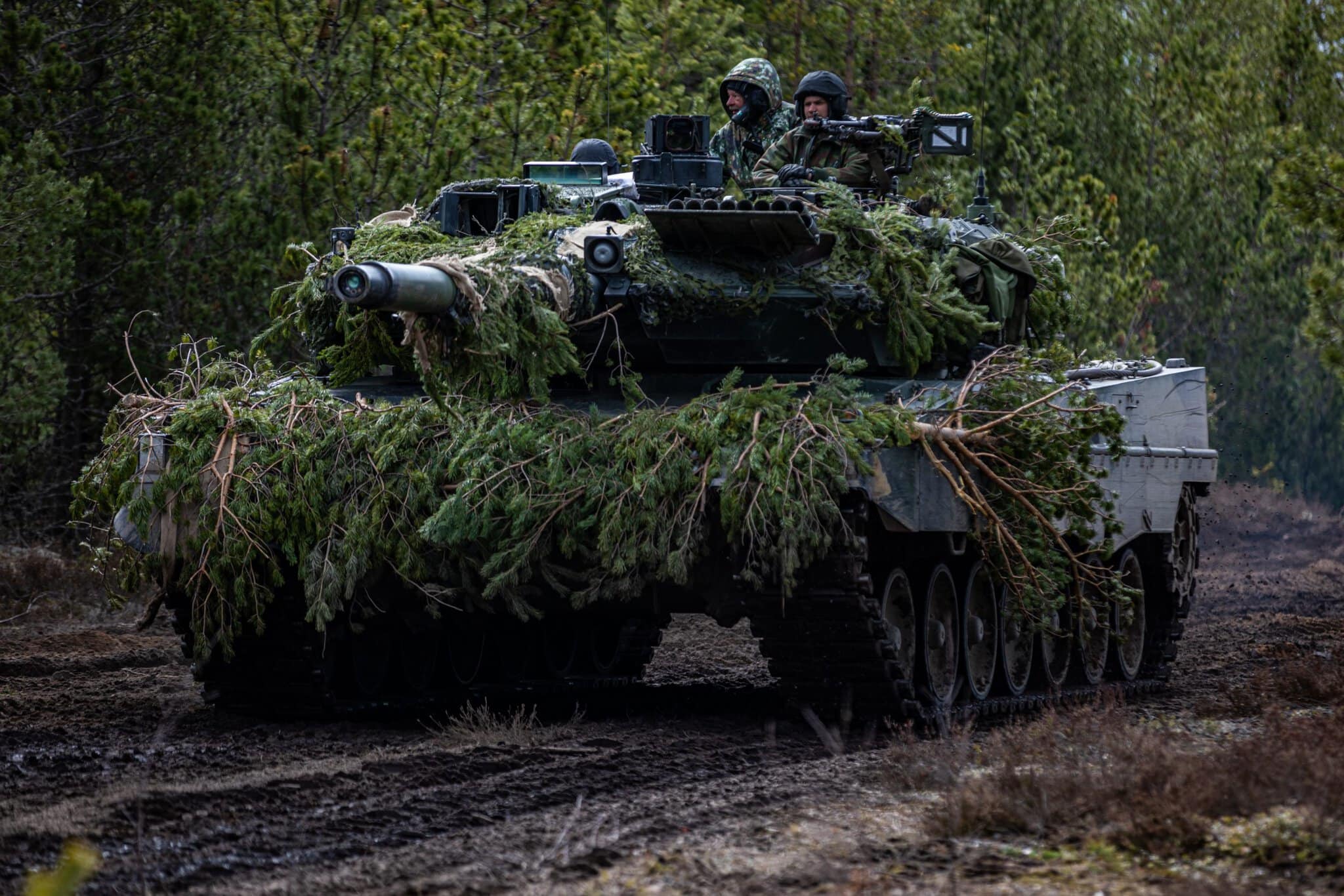 Fínsky Leopard 2A6 počas spoločného cvičenia NATO Arrow 23 vo Fínsku.