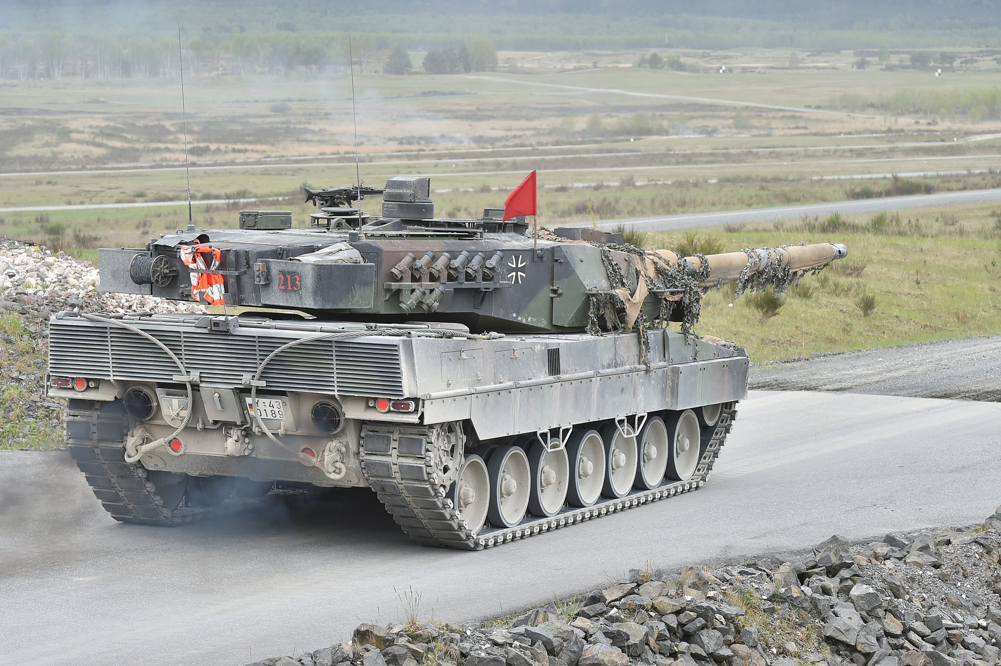 Posádka nemeckého tanku Leopard 2A6 nacvičuje ofenzívnu operáciu počas cvičenia Strong Europe Tank Challenge.