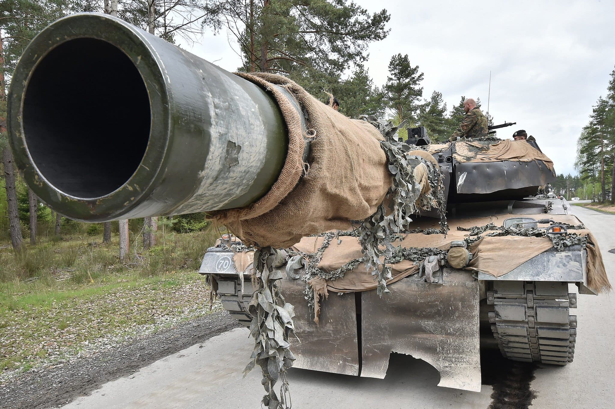 Posádka nemeckého tanku Leopard 2A6 nacvičuje ofenzívnu operáciu počas cvičenia Strong Europe Tank Challenge.