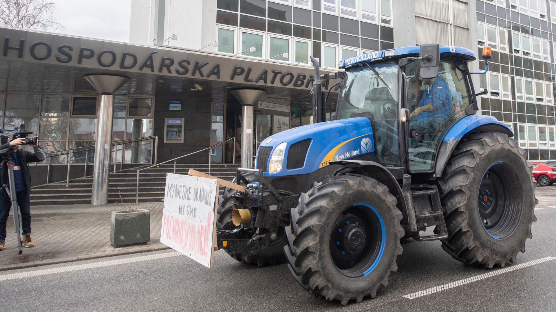 Na snímke traktori prechádzajú pred budovou Pôdohospodárskej platobnej agentúry (PPA) v Bratislave v rámci celoslovenského protestu farmárov, gazdov, roľníkov a poľnohospodárov.