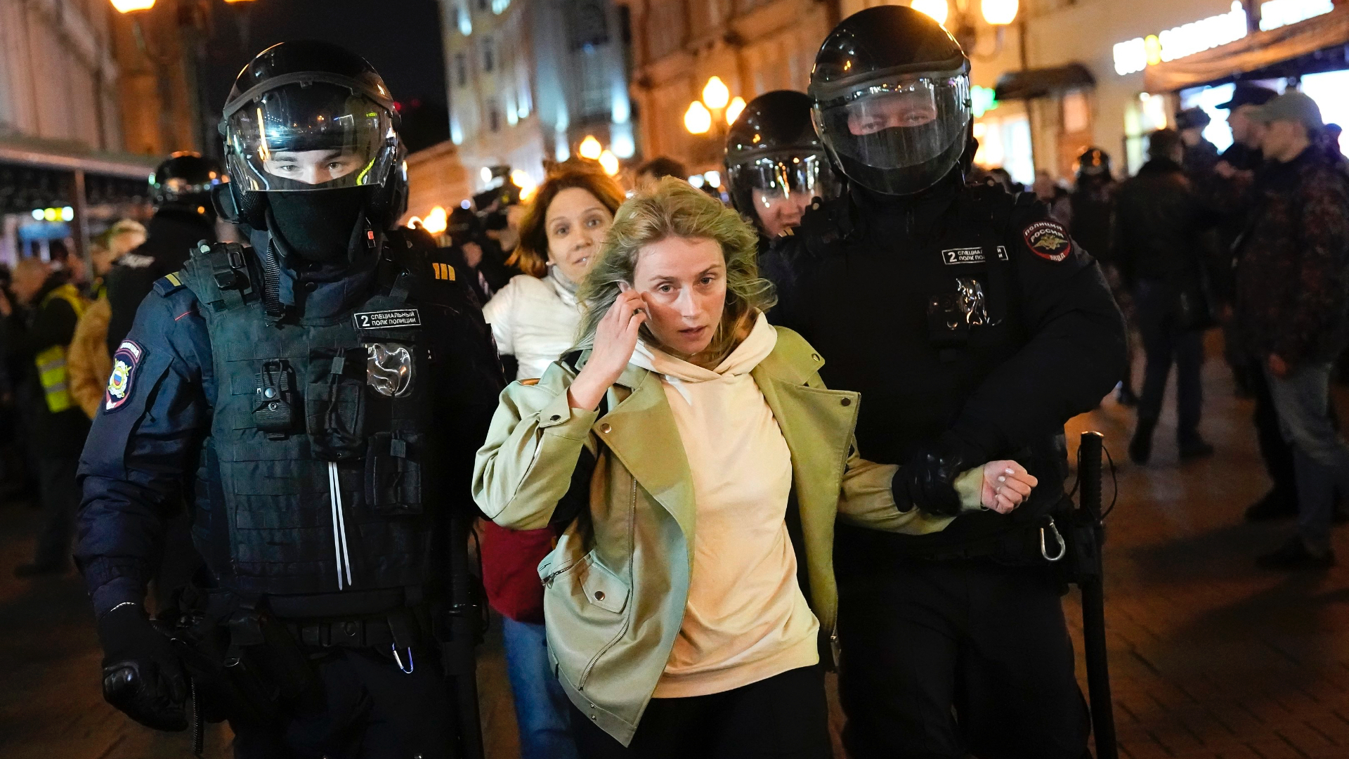 Ženy protestovali proti mobilizácii mužov. Polícia ich zadržiavala.