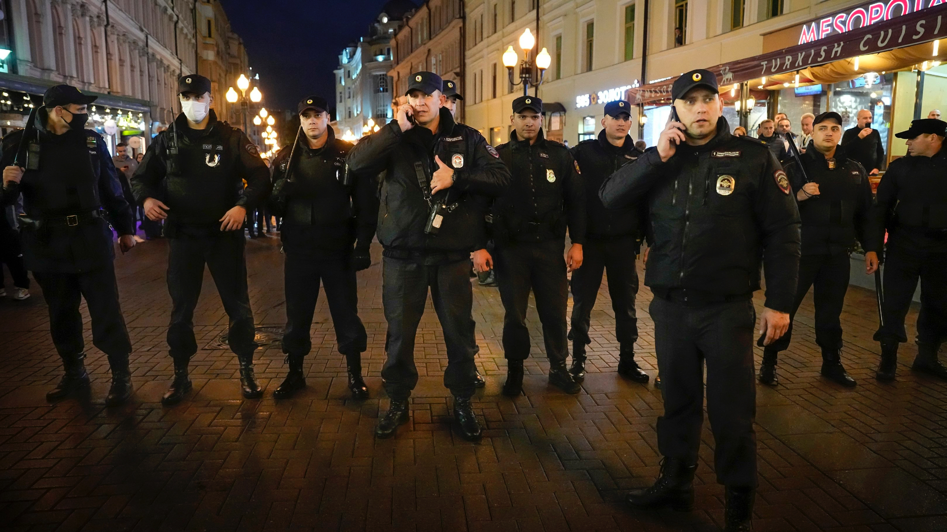 Policajti dohliadajú na protesty proti mobilizácii, ktoré sa uskutočnili po celej krajine.